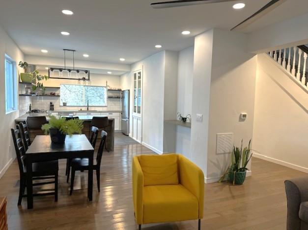 Move right into this stunning, top-to-bottom renovation in the heart of Homestead. This 3 bedroom, 1.5 bath home blends modern design w/timeless charm across 3 beautifully finished levels. Step inside to a beautiful entry that opens to a gorgeous open-concept living room, dining room, & kitchen~perfect for entertaining. The 1st floor features rich 3/4" oak flooring, while the 2nd floor shines w/hickory, engineered hardwood. The spacious kitchen impresses w/abundant white cabinetry, a custom concrete countertop, and a striking waterfall peninsula island. Appliances are included. Thoughtful touches remain, including the original built-in pantry, grand staircase, and original doors that add character to the modern finishes. The 2nd floor offers 2 bedrooms including a primary suite with an 8'x8' flex space~ideal for a dressing room, office or nursery. The 3rd bedroom is situated on the 3rd floor. The fully updated main bath is a luxurious 9'x9' retreat with soaking tub & walk in shower.